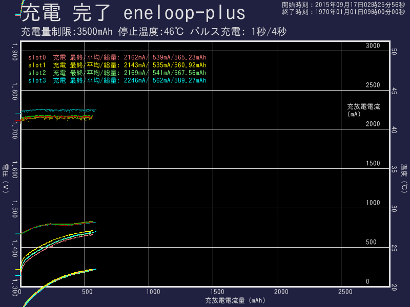 | コメント: | 充電中に、接続切れた。たまたま4秒のうち1秒の充電中に切れたので、朝まで、フルパワーで充電(2A以上)を続けていたことになるが、多少は痛むだろうなあ。 | |