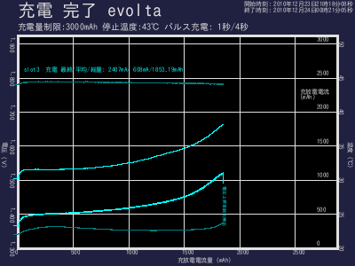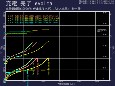 1週間放置で、これだけ、維持電圧が落ちてる。 購入後3年のevoltaだが、もう、寿命といっていい状態かな。 カメラに入れてるeneloopは4年で、まだ健在なのに。 ちなみに、この維持電圧の低さだったら、自転車ライトのような機器では、長く光る場合もあるんだよね。 |